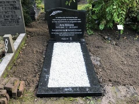 Dit prachtige enkele grafmonument is geplaatst op de begraafplaats Crooswijk in Rotterdam. De grafsteen is gemaakt van hoogwaardig graniet in de kleur zwart graniet. De letterplaat is een golfkop, beletterd met zilveren ingeverfde tekst. De opdrachtgever heeft ervoor gekozen om verschillende soorten symboliek in het kopstuk te verwerken. De zerk is gevuld met grint, dat het geheel mooi samenvoegt.