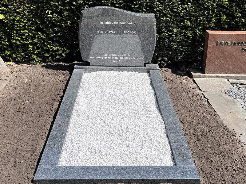 In mei 2022 hebben dit mooie grafmonument geplaatst op de Algemene Begraafplaats aan de Oldenzaalsestraat in Hengelo. Het is een enkel graf dat volledig in de kleur Royal Impala is uitgevoerd. Het kopstukje is in de vorm van een golfkop, waarbij de grafsteen tekst in het natuursteen is gezandstraald en vervolgens met een zilverkleurige verf is ingekleurd. Het liggende gedeelte van de grafsteen is gevuld met wit grind.